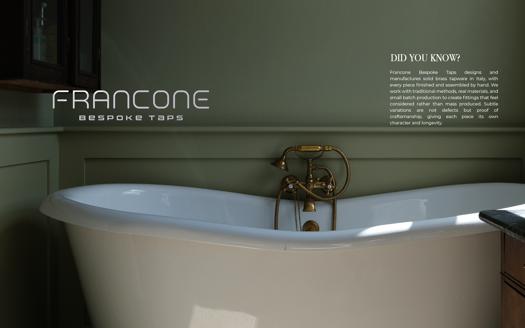 Francone Bespoke Taps is a high-end brass tap manufacturer working in a category that is usually marketed in a very technical, catalogue-like way. When we started working together, the brand wanted to move away from “just another tap company” and into a more aspirational, fashion-led space. The reference points were not other tap brands, but fashion and luxury houses, brands that sell desire, not just products.